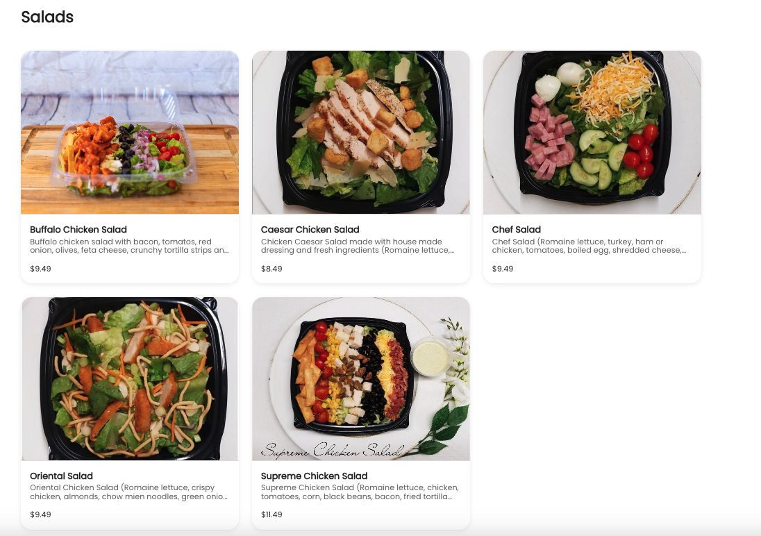 Caesar salad made with house-made dressing and fresh ingredients (romaine lettuce, grilled chicken, Parmesan cheese, croutons).