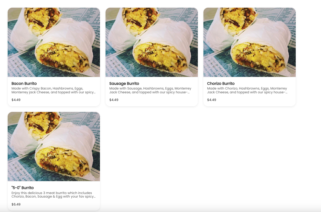 Enjoy a delicious 3 meat burrito which includes bacon, sausage and chorizo with our spicy fatty sauce and Monterey Jack cheese.